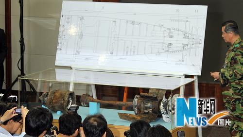 5月20日,韓國“天安”號軍民聯(lián)合調查團成員展示在事故海域搜集到的證據(jù)。當日,韓國“天安”號軍民聯(lián)合調查團公布正式調查結果稱,綜合各種證據(jù)來看,韓國海軍的“天安”號警戒艦是遭受朝鮮小型潛水艇發(fā)射的魚雷攻擊而沉沒的。新華社/聯(lián)合通訊社