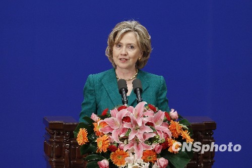 5月24日,第二輪中美戰(zhàn)略與經(jīng)濟(jì)對(duì)話在北京開幕,美國(guó)總統(tǒng)奧巴馬的特別代表、國(guó)務(wù)卿希拉里·克林頓出席開幕式并講話。 中新社發(fā) 盛佳鵬 攝