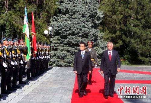 胡錦濤與烏茲別克斯坦總統(tǒng)卡里莫夫舉行會談,簽署中烏關(guān)于全面深化和發(fā)展兩國友好合作伙伴關(guān)系的聯(lián)合聲明,并見證兩國涉及經(jīng)貿(mào)、天然氣、非資源與高科技等領(lǐng)域7個(gè)合作文件的簽署。訪烏期間,卡里莫夫總統(tǒng)對胡錦濤全程相陪。擔(dān)任中國代表團(tuán)發(fā)言人的外交部新聞司司長馬朝旭概括此訪時(shí)這樣表述,“高效、務(wù)實(shí)、富有成果”。