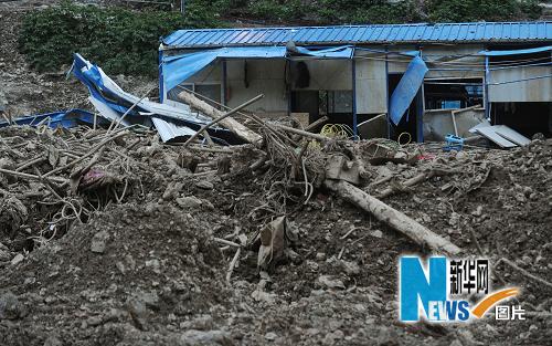 6月15日,山體垮塌后的工棚面目全非。新華社記者 江宏景 攝