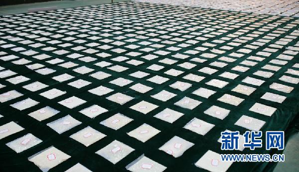 這是工作人員在展示查獲的巨額數(shù)量海洛因。新華社發(fā)