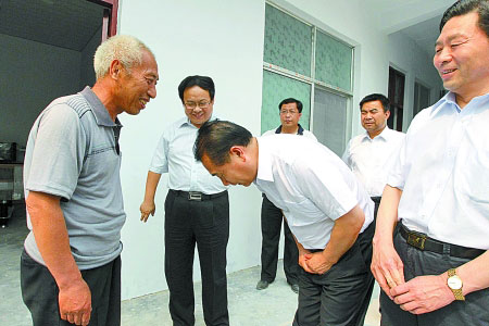 張立勇剛進院,趙作海便迎了上來。張立勇立即向趙作海彎腰鞠躬,對由于法院判錯案給趙作海造成的傷害表達歉意。