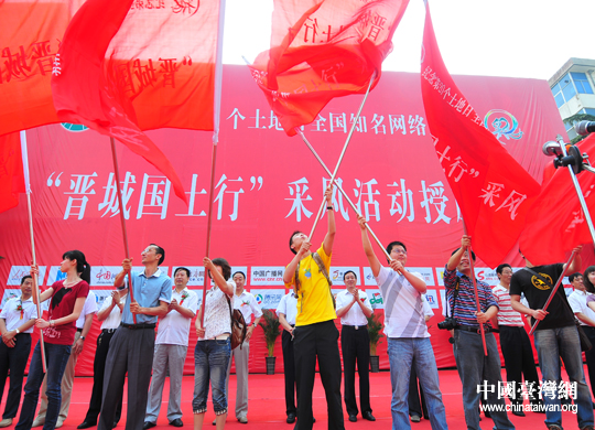 “全國知名網(wǎng)絡(luò)媒體晉城國土行”采風(fēng)活動(dòng)授旗儀式(中國臺(tái)灣網(wǎng)記者 孫金誠 攝)