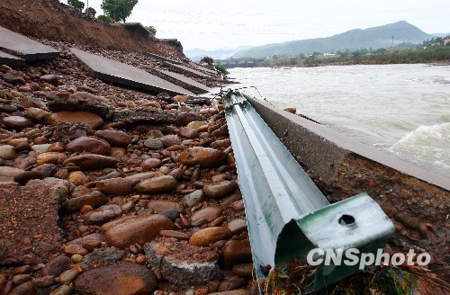 6月23日清晨,被水沖毀路段現(xiàn)場(chǎng)。近日,浙西暴雨導(dǎo)致浙江衢州市柯城區(qū)石呈線1Km 400m處發(fā)生塌方。目前,被沖毀的路段有40多米,路基150米,車(chē)輛和行人已無(wú)法通行。 中新社發(fā) 江瀛 攝