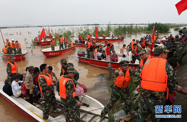 6月23日,消防官兵正在撫州救援現(xiàn)場(chǎng)轉(zhuǎn)移被困群眾。由于將再次出現(xiàn)強(qiáng)降雨,為確保群眾生命安全,防止群眾反復(fù)受災(zāi),6月22日下午開始,江西省加大撫河唱?jiǎng)P堤決堤災(zāi)區(qū)群眾轉(zhuǎn)移力度,眾多原來在自家二三層樓房安置的群眾,也將及時(shí)轉(zhuǎn)移到戶外安全地帶。氣象部門預(yù)計(jì),6月24日至26日,江西省將出現(xiàn)新一輪強(qiáng)降雨過程。而撫河唱?jiǎng)P堤決堤災(zāi)區(qū)以及撫河潰堤河段上游地區(qū)都處于強(qiáng)降雨區(qū)。根據(jù)現(xiàn)場(chǎng)搶險(xiǎn)總指揮部預(yù)計(jì),6月23日下午決堤災(zāi)區(qū)群眾將可全部轉(zhuǎn)移出。 新華社發(fā)(劉永 攝)