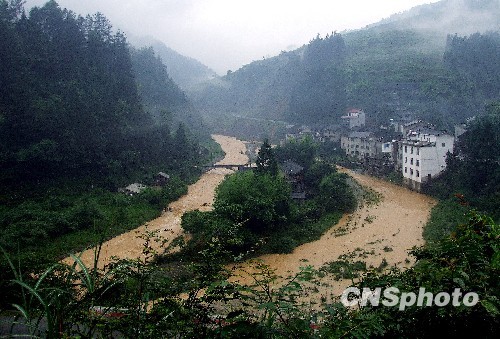 從6月23日凌晨開(kāi)始,貴州省雷山縣再次遭到暴雨襲擊,多條河段猛漲。 中新社發(fā) 楊昌澌 攝