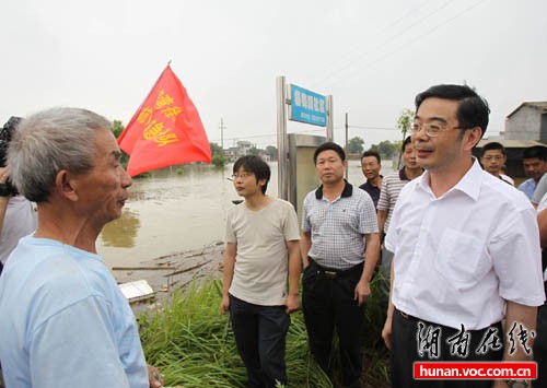 6月24日,湖南省委書記周強在湘潭市雨湖區(qū)楊梅洲向守堤群眾了解防汛準備情況。 記者 張目 攝