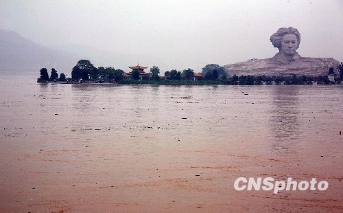 受連日強(qiáng)降雨影響,湖南湘江流域防汛形勢(shì)異常嚴(yán)峻。數(shù)據(jù)顯示,6月25日8時(shí),湘江長(zhǎng)沙段水位達(dá)到38.46米,直逼1998年最高洪峰。圖為被洪水包圍的長(zhǎng)沙橘洲公園。 中新社發(fā) 白祖偕 攝