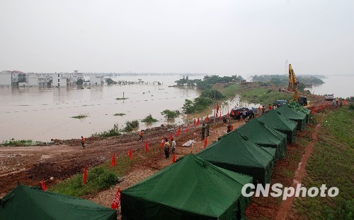 江西省委書記蘇榮25日上午再次趕到?jīng)Q堤封堵現(xiàn)場,查看工作進(jìn)展情況。蘇榮對武警水電第二總隊工作給予高度贊譽,并鼓勵官兵繼續(xù)奮戰(zhàn),盡早將決堤口堵住。