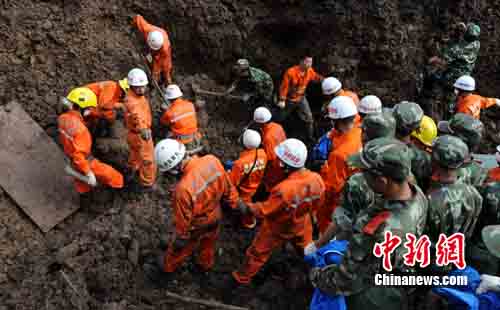 30日,關(guān)嶺滑坡災(zāi)區(qū)由雨轉(zhuǎn)陰,天氣好轉(zhuǎn),滑坡災(zāi)害現(xiàn)場(chǎng)搶險(xiǎn)進(jìn)程迅速加快,包括解放軍、武警、消防、公安、礦山救援人員在內(nèi)的2000多名搶險(xiǎn)人員,26臺(tái)機(jī)械挖掘了10萬立方粘土。