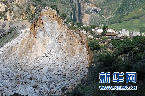 弄林屯位于崩塌山體的東面,而弄林屯背面的山體全部崩塌。村民羅順高告訴記者,山體崩塌時(shí)村民聽見兩聲巨響,跑出去才看見山體崩塌,巨石不斷滾落,十幾戶直接相連的民房、水柜、羊圈等建筑也崩塌或者開裂。其中,一戶村民的羊圈和牛圈被淹沒在巨石中。