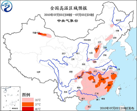中央氣象臺7月3日06時繼續(xù)發(fā)布高溫藍(lán)色預(yù)警: