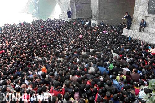 資料圖片 在首屆“河南文化遺產(chǎn)日”的當(dāng)天,大批市民和附近的群眾涌入龍門石窟景區(qū)(2005年11月攝)。新華社記者王頌攝