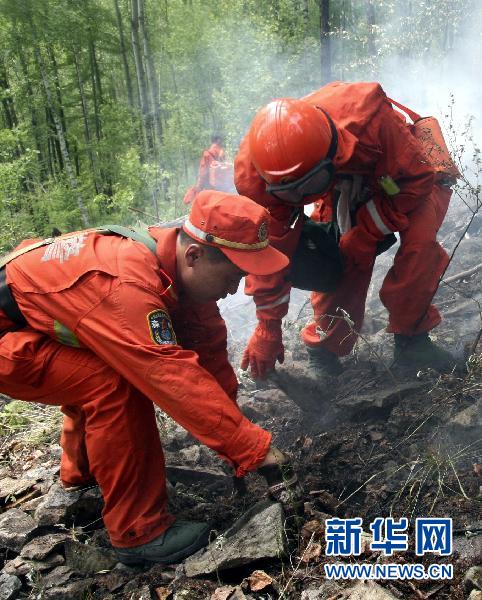 7月2日,武警黑龍江省森林總隊(duì)官兵在剛剛撲滅的火點(diǎn)進(jìn)行徹底清理,防止復(fù)燃。新華社發(fā)