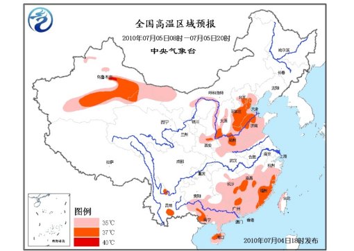 據(jù)中廣網(wǎng)報道,中央氣象臺首席預報員孫軍介紹說,5日高溫天氣仍然持續(xù)。南方地區(qū)的范圍稍微縮小一些。在江南的東南部、華南還會有35℃-37℃。華北地區(qū)的高溫范圍和強度會有所擴大,在京津、河北、山西南部、山東、河南這些地區(qū)會有35℃-37℃,局部地區(qū)會有38℃到40℃的高溫天氣。