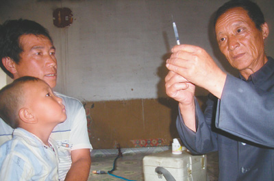 王元林正準備出門,“張亮杰的孩子3歲了,該加強接種流腦疫苗了,半月前娃兒發(fā)燒不能注射,今兒得再去一趟!彼⌒囊硪淼匕岩呙绾捅鶋K從冰箱移入隨身背的疫苗箱,邊穿那件“出門才穿”的中山裝邊說,“針眼上的是天大的事,件件馬虎不得!