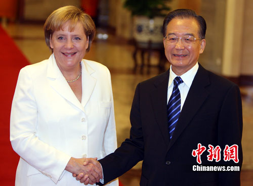 中國國務(wù)院總理溫家寶與德國總理默克爾16日上午在人民大會堂舉行會談。