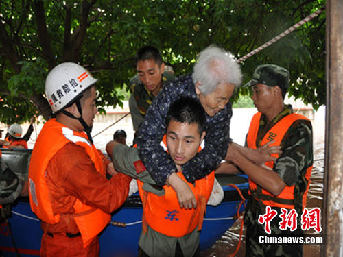 內(nèi)江消防官兵緊急轉(zhuǎn)移民眾。