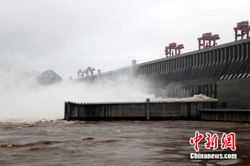 20日8時,峰值為7萬立方米/秒的洪水抵達三峽大壩。這是三峽工程建成后的首次大規(guī)模洪峰。