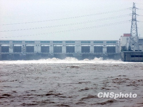 上午9時(shí)許,記者在三峽壩頂看到,9個(gè)深孔泄洪,巨大的白色水柱如虹如龍,在壩頂能感覺(jué)到水的強(qiáng)大沖擊力,泄洪閘前霧氣騰騰,洪水如脫韁野馬,飛瀉而出,發(fā)出如雷鳴般的巨響,翻起的滾滾白浪洶涌的拍打著壩下的江堤,在三峽大壩左右岸電站廠房?jī)?nèi)26臺(tái)發(fā)電機(jī)組全部開(kāi)啟運(yùn)轉(zhuǎn),電能源源不斷送往中國(guó)各地。