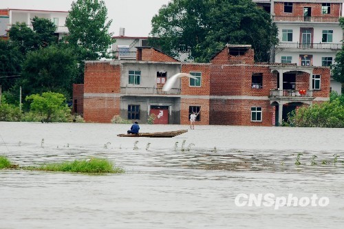 自7月8日21時開始,江西樂平市普降大到暴雨,平均降雨量160毫米,局部地區(qū)達250毫米,強降雨導致該市浯口鎮(zhèn)產生了嚴重內澇災害,相鄰的程家墩、楊溪、桃園三村處在一片汪洋之中,成為了“孤島”。 中新社發(fā) 朱定文 攝