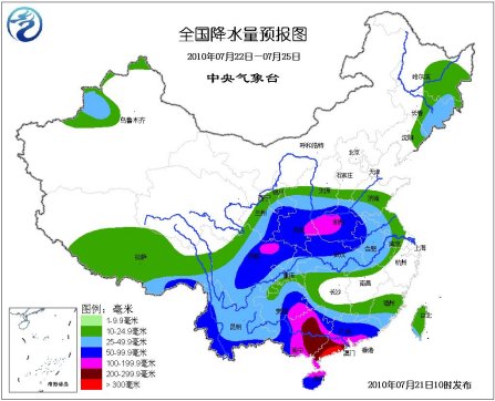 21-24日,華南大部及貴州等地將有50-80毫米降雨,其中廣東中南部、廣西中東部等地有100-180毫米,局地雨量可達(dá)250-300毫米。