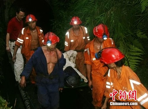 29日早晨6時10分,重慶長壽透水煤礦4名井下礦工在被困逾62小時后同時獲救。中新網(wǎng)發(fā) 連肖 攝