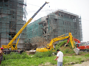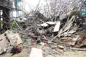 據(jù)業(yè)內(nèi)人士介紹,在樓與樓之間建“連廊”(天橋),并不是“高難工程”,泰州開發(fā)區(qū)建筑工地為何犯了如此“不高級(jí)”的錯(cuò)誤?附近工地一名工作人員介紹,據(jù)他所知,“天橋”坍塌可能有兩個(gè)原因,一是該“天橋”當(dāng)天上午澆筑時(shí),在半空中負(fù)責(zé)提供混凝土的斗車,因操作失控,誤撞了并不牢固的“天橋”;二是在下面支撐“天橋”的腳手架的“力量”不夠。但這兩種解釋并沒有得到有關(guān)方面的確認(rèn)。(陳天斌 王國(guó)柱 文/攝)