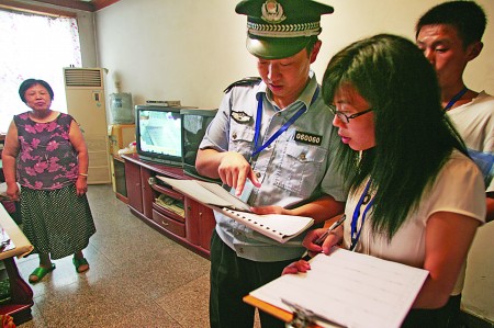 7月28日,濟(jì)寧阜橋派出所民警正在社區(qū)居民家中檢查戶口。據(jù)了解,全國(guó)第六次人口普查全面展開(kāi),阜橋派出所針對(duì)轄區(qū)流動(dòng)人口多、出租房屋多、工作量大等特點(diǎn),提前入手,深入到各社區(qū)街道,走家串戶集中開(kāi)展戶口整頓工作。本報(bào)記者 張曉科 攝