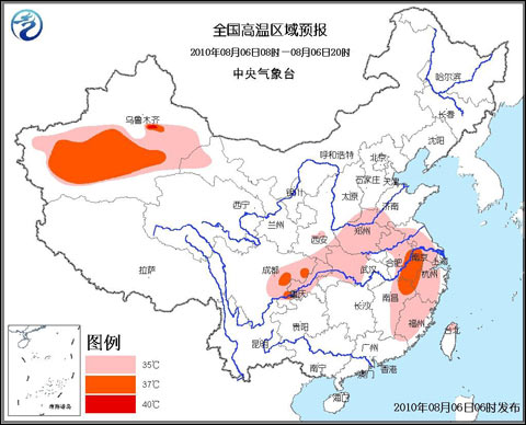 中央氣象臺8月6日06時繼續(xù)發(fā)布高溫黃色預警: