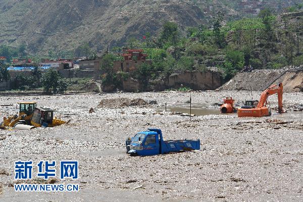 這是舟曲縣被泥石流淹沒的機(jī)械設(shè)備和車輛(8月8日攝)。 8月7日22時許,甘南藏族自治州舟曲縣突降強(qiáng)降雨,縣城北面的羅家峪、三眼峪泥石流下泄,由北向南沖向縣城,造成沿河房屋被沖毀,泥石流阻斷白龍江、形成堰塞湖。截至當(dāng)日16時統(tǒng)計,泥石流災(zāi)害已造成127人死亡,76人受傷,近2000人失蹤,緊急轉(zhuǎn)移安置4.5萬人,倒塌房屋120余戶300余間。新華社發(fā)