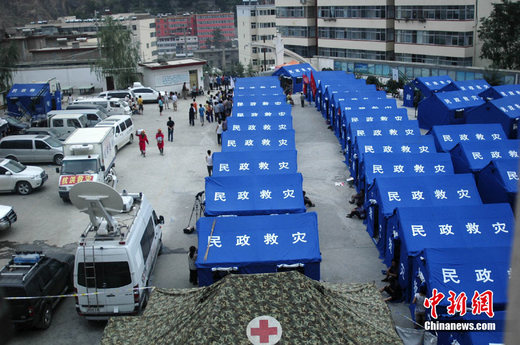 8月10日晚,設(shè)在甘肅舟曲三中的受災(zāi)民眾安置點(diǎn)內(nèi)架起很多救災(zāi)帳篷,家園被毀人們的生活在這里得以繼續(xù)。據(jù)民政部網(wǎng)站消息,截至8月10日16時(shí),民政部從中央救災(zāi)物資儲(chǔ)備庫(kù)調(diào)運(yùn)的物資中已有5000張折疊床和5000條睡袋運(yùn)抵舟曲災(zāi)區(qū),其余5000頂12平方米單帳篷、200頂36平方米大帳篷、2萬(wàn)件棉大衣、3000張折疊床預(yù)計(jì)10日夜間運(yùn)抵。中新社發(fā) 楊鴻 攝