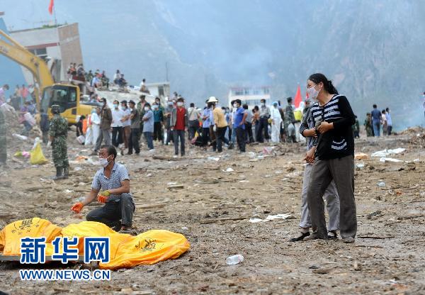 8月12日,尚尖琴在看到妹妹和兩個(gè)外甥的遺體后失聲痛哭。 新華社記者 聶建江 攝