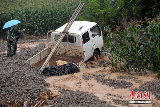 8月12日,甘肅省天水、隴南等地連遭暴雨襲擊,316國道沿線大山壩、麻沿鄉(xiāng)、篩子壩等多處通訊光纜被山洪沖斷,公路40余處出現(xiàn)滑坡、泥石流,通信、交通、電力中斷。目前,工程搶險(xiǎn)隊(duì)正加緊搶修。中新社發(fā) 陳文 攝