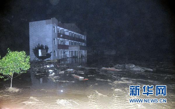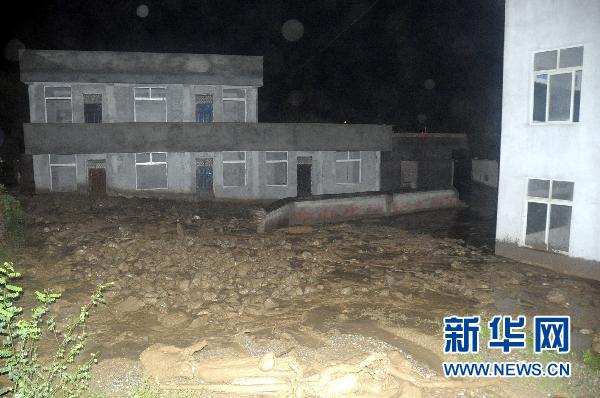 這是8月12日晚拍攝的被泥石流侵襲的甘肅文縣石坊鄉(xiāng)舊關(guān)村民房。 新華社發(fā)(劉二銀 攝)