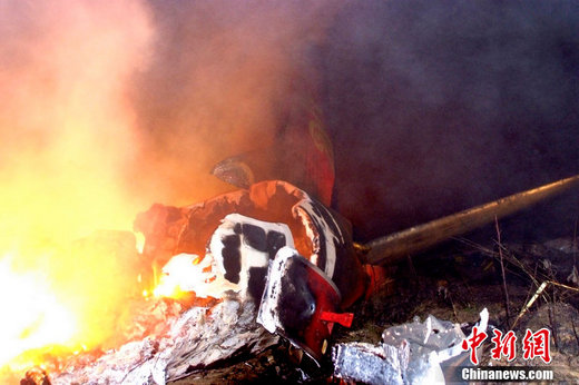 24日21時(shí)36分許,河南航空有限公司(原鯤鵬航空公司)一架由哈爾濱飛往伊春的E190型飛機(jī)在抵達(dá)伊春機(jī)場(chǎng)降落時(shí)失事,機(jī)上包括5名機(jī)組人員在內(nèi)共96人。失事現(xiàn)場(chǎng)發(fā)現(xiàn)43具遇難者遺體,其余53人獲救送醫(yī),目前無(wú)生命危險(xiǎn)。圖為飛機(jī)失事現(xiàn)場(chǎng) 。陳剛 攝
