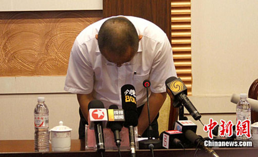 8月26日下午,有關(guān)方面在伊春舉行“8·24”伊春空難情況通報會。會上河南航空公司監(jiān)事會主席劉航向全社會道歉。中新社記者 崔顏鋒 攝