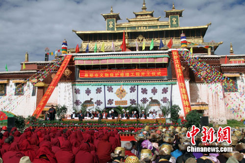 素有“西藏第一座寺廟”美稱的桑耶寺15日在大殿廣場舉行桑耶寺保護維修工程開工儀式。有關(guān)方面在儀式上表示,中國政府計劃投資人民幣7697萬元對桑耶寺康松?盗帧⒄狗鹋_、白哈王宮殿等12處建筑進行維修。