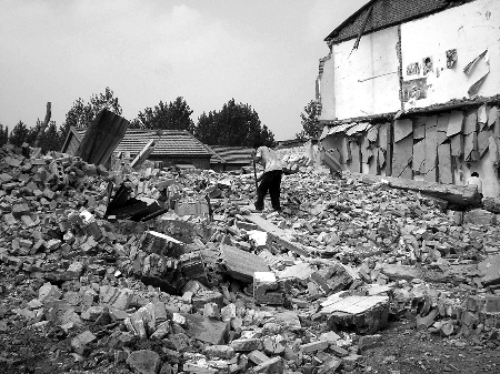 16日中午12時許,記者在現(xiàn)場看到,王軍家的房子已被拆毀,到處是碎磚頭塊和斷裂的樓板。