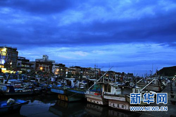 資料圖片:9月18日,宜蘭南方澳漁港停滿船只,躲避強(qiáng)臺(tái)風(fēng)“凡亞比”。強(qiáng)臺(tái)風(fēng)“凡亞比”逼近臺(tái)灣,宜蘭漁港船只緊急入港,漁民加固船只,應(yīng)對(duì)臺(tái)風(fēng)。新華社發(fā)