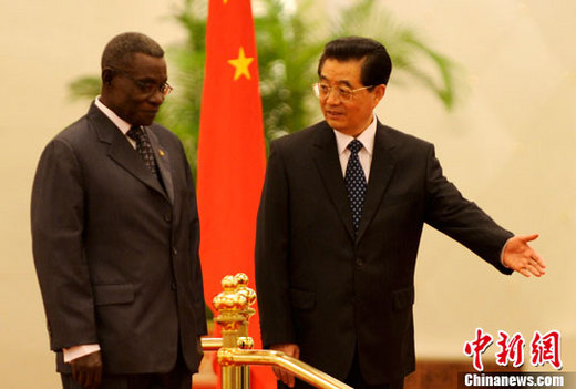 9月20日,中國國家主席胡錦濤在北京人民大會堂舉行儀式歡迎加納共和國總統(tǒng)約翰·埃文斯·阿塔·米爾斯訪華。中新社發(fā) 廖攀 攝