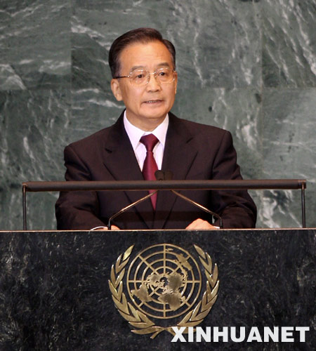 資料圖片:2008年9月25日,中國國務(wù)院總理溫家寶在紐約出席聯(lián)合國千年發(fā)展目標(biāo)高級別會議并作主旨發(fā)言。 新華社記者 姚大偉 攝