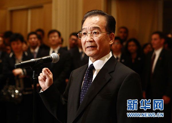 中國國務(wù)院總理溫家寶當(dāng)?shù)貢r間9月21日晚在紐約會見旅美華僑華人、中資機構(gòu)及留學(xué)生代表時說,釣魚島是中國的神圣領(lǐng)土。日方最近在釣魚島海域抓扣中國漁民和漁船,至今不釋放中方船長,這是完全非法的、無理的,已經(jīng)對中方船長及其家人造成嚴(yán)重傷害,并激起海內(nèi)外全體中國人的憤怒。新華社記者 姚大偉攝