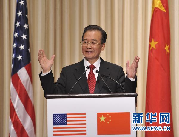 中國(guó)國(guó)務(wù)院總理溫家寶當(dāng)?shù)貢r(shí)間22日在紐約出席了美國(guó)友好團(tuán)體舉行的盛大歡迎晚宴,并發(fā)表了題為《攜手開創(chuàng)新時(shí)期中美關(guān)系的光明未來》的演講。