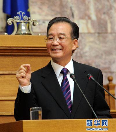 演講前,請(qǐng)?jiān)试S我說(shuō)幾句發(fā)自肺腑的話。今天早上,帕潘德里歐總理陪同我登上雅典衛(wèi)城,看著這座古城,我看到一個(gè)充滿陽(yáng)光、文明、歡樂(lè)與和諧的希臘。希臘以大海和高山引以為豪,海納百川,包容整個(gè)世界,壁立千仞,無(wú)論遇到多大的困難都不會(huì)屈服。我相信,希臘人民一定能以百折不撓的毅力和堅(jiān)定頑強(qiáng)的意志克服眼前的困難。最終的勝利屬于希臘人民!
