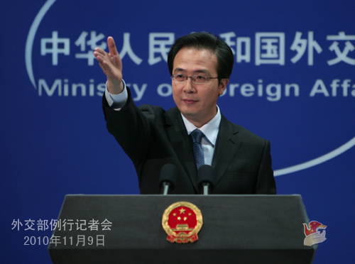 2010年11月9日,外交部發(fā)言人洪磊主持例行記者會(huì)。
