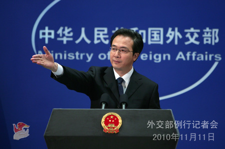 2010年11月11日,外交部發(fā)言人洪磊主持例行記者會(huì)。