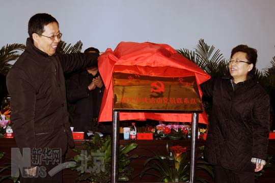 11月19日上午,中央文獻研究室副主任、機關黨委書記董宏(左)和北京市委常委、組織部長呂錫文(右)共同為“中共中央文獻研究室創(chuàng)先爭優(yōu)活動黨員聯(lián)系點”揭牌。新華社記者劉浦泉攝