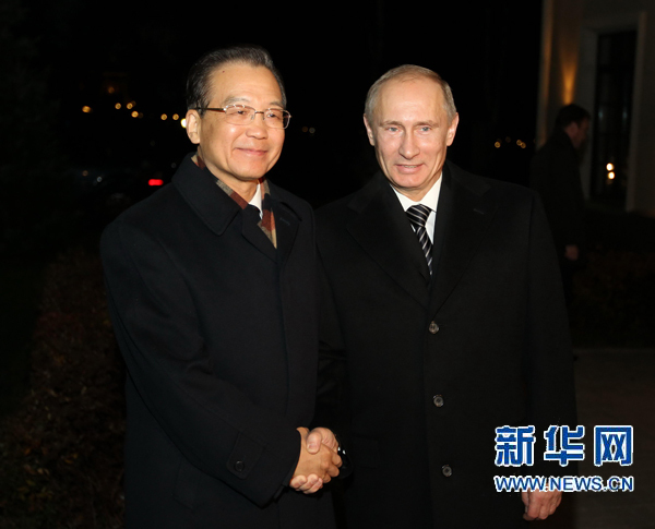 11月22日,國務(wù)院總理溫家寶在圣彼得堡與俄羅斯總理普京舉行小范圍會談并出席普京舉行的歡迎宴會。新華社記者鞠鵬攝
