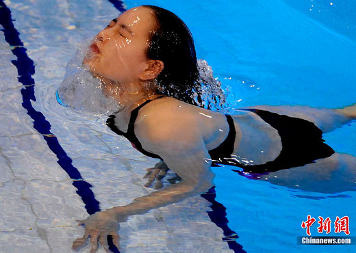 11月24日,廣州亞運會跳水項目女子1米跳板決賽在奧體游泳館舉行,中國選手吳敏霞以326.15分奪得金牌。中新社記者 王東明 攝